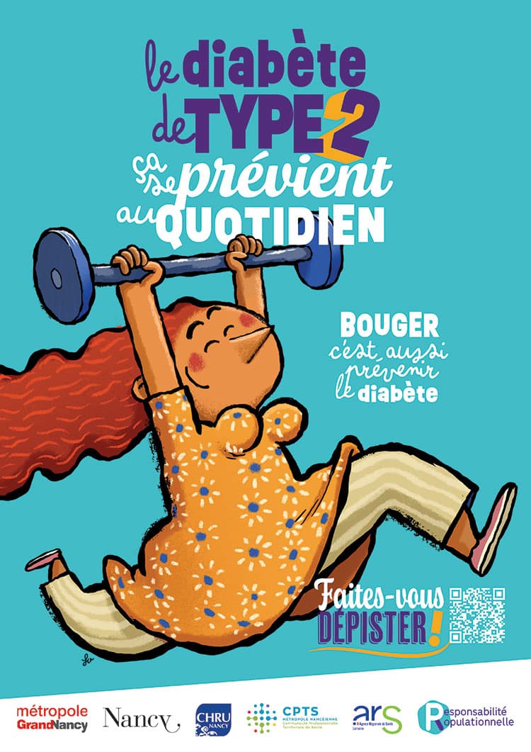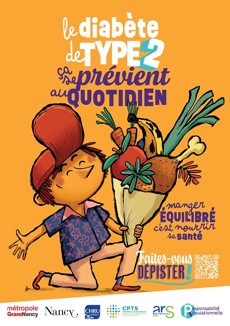 La Ville de Nancy lance une campagne santé de dépistage du diabète de type 2 avec l’illustration d’une affiche.